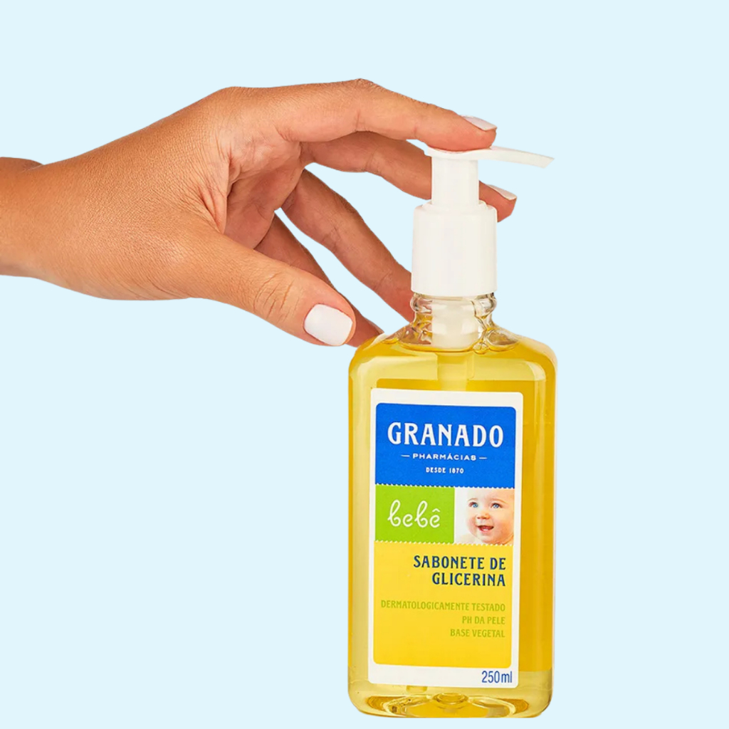 O Sabonete Líquido Granado Bebê Glicerina Tradicional 250ml foi desenvolvido para proporcionar uma limpeza suave e eficaz da cabeça aos pés, respeitando a pele sensível do bebê. Sua fórmula contém glicerina vegetal, que ajuda a manter a hidratação natural da pele, prevenindo o ressecamento e proporcionando um toque macio e delicado. Com base 100% vegetal, o sabonete é hipoalergênico, dermatologicamente testado e livre de corantes, parabenos e ingredientes agressivos. Pode ser utilizado diariamente desde os primeiros dias de vida, garantindo segurança, conforto e o cheirinho clássico e suave da linha Granado Bebê. Contém: - 1 Sabonete Líquido Glicerina Tradicional com 250ml: limpeza delicada da cabeça aos pés, mantendo a hidratação natural da pele 🌿 Benefícios: - Limpeza suave da cabeça aos pés, sem ressecar a pele; - Mantém a hidratação natural com glicerina vegetal; - Base 100% vegetal, ideal para peles sensíveis; - Hipoalergênico e dermatologicamente testado; - Sem corantes, sem parabenos e sem álcool etílico; - Fragrância leve e tradicional da linha Granado Bebê; - Indicado para uso diário desde o nascimento; - Produto não testado em animais (cruelty free). 🍼 Modo de uso: Aplique uma pequena quantidade do sabonete líquido sobre a pele molhada do bebê. Massageie suavemente até formar espuma e enxágue com água em abundância. Pode ser utilizado diariamente no corpo e no couro cabeludo. O Sabonete Líquido Granado Bebê Glicerina Tradicional oferece a limpeza delicada e a proteção que o seu bebê merece, com a tradição e o cuidado que fazem da Granado Pharmácias uma marca referência em cuidados infantis.