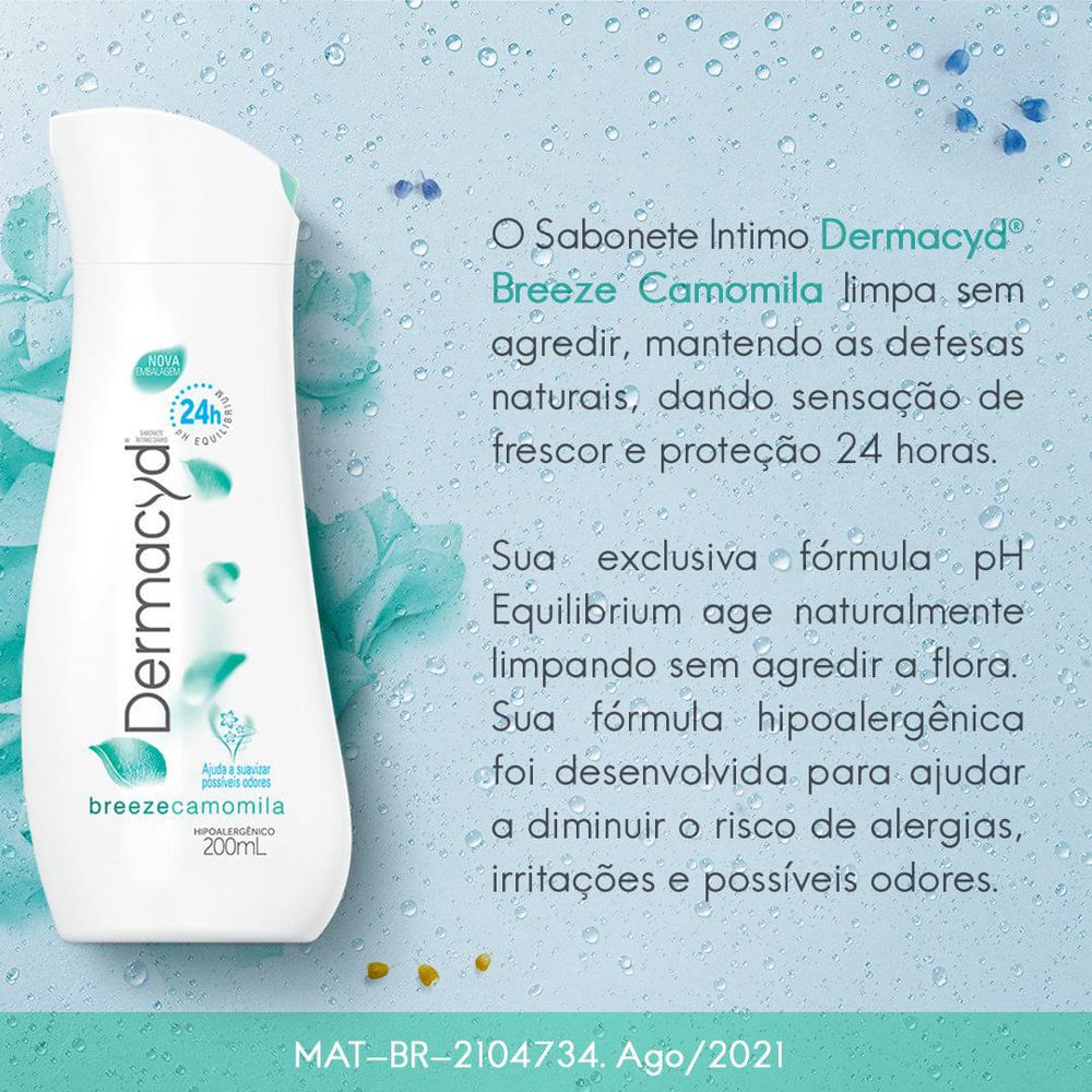 Sabonete Líquido Íntimo Dermacyd Breeze 200ml Dermacyd é a marca de sabonete íntimo que está sempre ao seu lado porque conhece as necessidades e os desafios que as mulheres enfrentam diariamente. Foi
