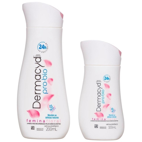 Sabonete Líquido Íntimo Dermacyd Pro Bio Femina Floral – Kit 200ml + 100ml -Mais proteção para mulheres: O Sabonete Líquido Íntimo Dermacyd, foi desenvolvido especialmente para cuidar da região íntima da mulher. Limpa sem agredir, mantendo as defesas naturais, dando sensação de frescor e proteção 24 horas. Sua exclusiva fórmula pH Equilibrium age naturalmente limpando sem agredir a flora. Sua fórmula hipoalergênica foi desenvolvida para ajudar a diminuir o risco de alergias, irritações e possíveis odores. -Cuidado com notas Florais -Diferente dos sabonetes comuns ou bactericidas, o novo Dermacyd Femina Floral tem pH similar ao da região íntima que mantém as defesas naturais. Pode ser usado diariamente. Em dias de frio recomenda-se o uso de uma vez ao dia, e no calor, até 3 vezes ao dia