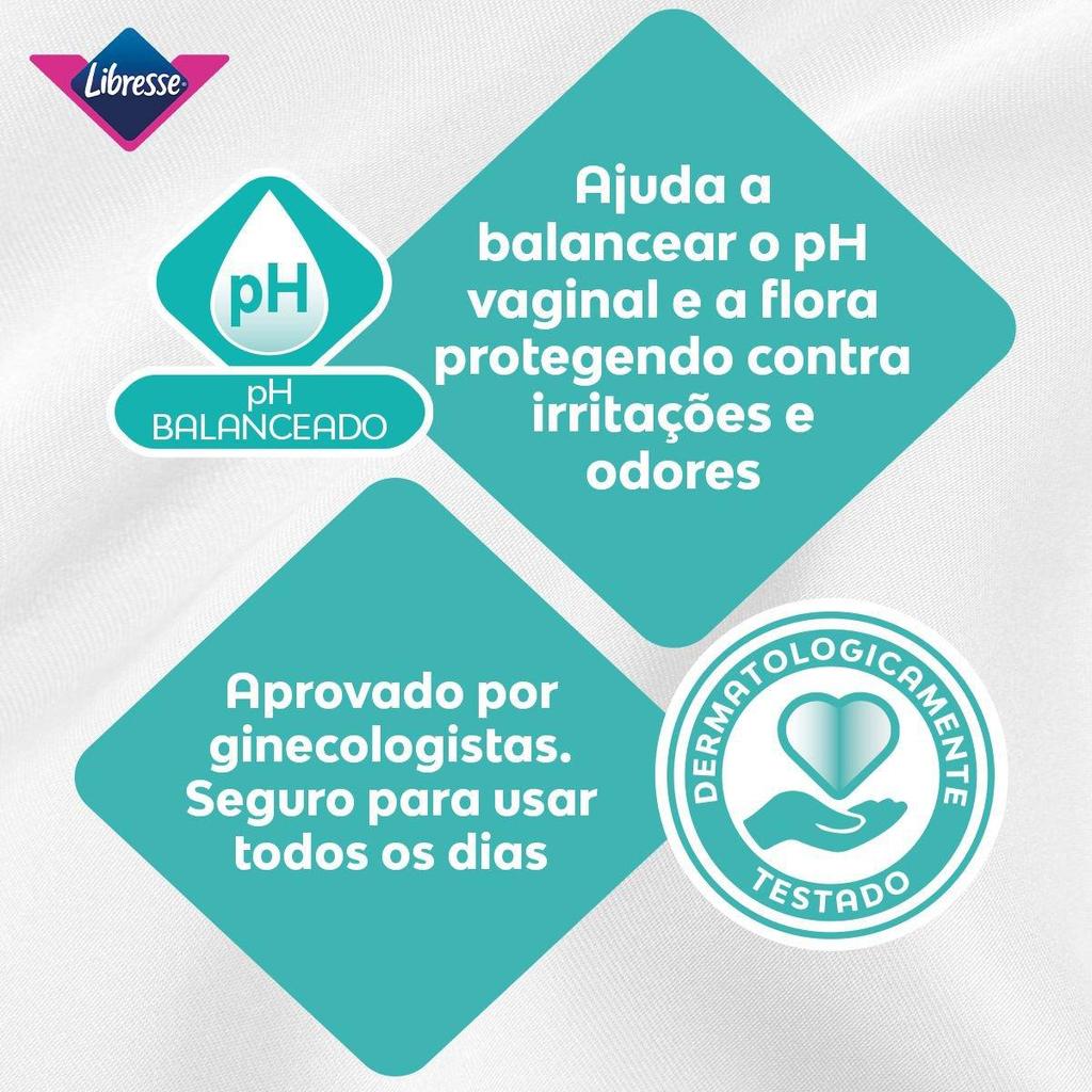 Sabonete Íntimo Libresse Diário Pure Sensitive - Higiene Suave e Hipoalergênica Libresse é uma marca com uma linha completa de produtos para o ciclo menstrual. Acreditamos que o ciclo menstrual é único. Vamos surpreender e transformar a relação com a sua menstruação, oferecendo um lugar seguro sem vazamentos e desconfortos. A pele da sua Zona-V é a mais sensível da sua região íntima e precisa de um cuidado especial. Usar sabonetes convencionais podem alterar o pH da área, causando desconforto, coceiras e odores. Por isso, nosso produto possui ácido lático, um ingrediente que ajuda a balancear o pH da sua Zona-V. Nosso Sabonete Íntimo Líquido Diário Pure Sensitive é 0% fragrâncias, corantes e alergênicos, proporcionando assim uma agradável sensação de limpeza e frescor. Ginecologicamente e dermatologicamente testado, é seguro utilizar todos os dias. Agora com nova fórmula, feito com +70% dos ingredientes de origem natural e extratos que auxiliam na umectação e proteção da pele íntima. Benefícios: - Produto 0% fragrâncias, corantes e alergênicos. - Possui ácido lático que garante o equilíbrio da flora vaginal. - Feito com +70% dos ingredientes de origem natural. - Ginecologicamente e dermatologicamente testado. - Cuidado para a sua pele íntima sensível. Como Usar? Durante o banho, aplique uma pequena quantidade na região íntima externa. Enxágue abundantemente com água. Uso externo. Posso usar sabonete íntimo todos os dias? Sim, pode usar sabonete íntimo todos os dias, mas é importante ter moderação. O uso excessivo pode desequilibrar a flora bacteriana e o pH vaginal, o que pode causar irritações ou infecções. - Use o sabonete íntimo com moderação. - Procure orientação profissional para saber a melhor frequência para você. - Evite banhos muito quentes ou frios. - Prefira calcinhas de algodão ou com tecido que evite a umidade da região. - Dormir eventualmente sem calcinha para ajudar na ventilação da parte íntima. Cada pessoa é única e pode ter reações ou sensibilidades diferentes ao uso de produtos cosméticos. O excesso pode ser tão prejudicial quanto a falta de higiene, pois desequilibra a flora natural que protege a área íntima. A higienização em excesso pode retirar as bactérias naturais da vulva, assim como sua oleosidade natural, que atua como proteção. Pode ser usado em outras partes do corpo? Usar o sabonete íntimo em outras regiões do corpo pode causar ressecamento e odores. Pode ser usado durante a menstruação? Sim. Pode trazer uma sensação de frescor e bem-estar.