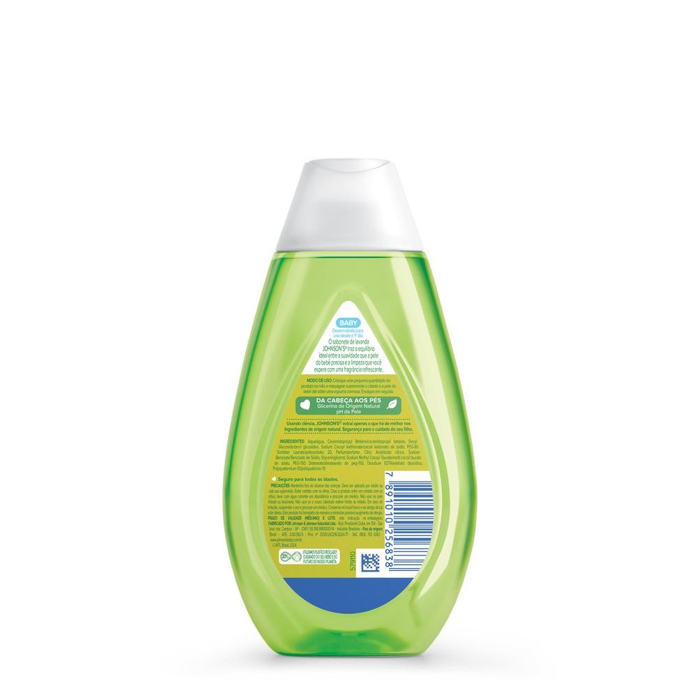 O que é e para que serve? Você sabia que a pele do bebê é mais fina e perde água duas vezes mais rápido que a pele do adulto? Por isso, é importante manter uma rotina de limpeza e higiene adequada para os bebês já nos primeiros dias de vida. O Sabonete Líquido de Glicerina Lavanda JOHNSON'S® Baby, 200mL é o cuidado que a pele do bebê precisa e a limpeza que você espera com uma fragrância refrescante. Além disso, é testado por pediatras e dermatologistas, hipoalergênico e seguro desde o primeiro dia de vida. Frasco com 20% de plástico reciclado, cuidando do seu bebê e do futuro do nosso planeta! Benefícios e diferenciais 100% livre de álcool etílico, corantes e sulfatos. Pele hidratada e perfumada Limpa suavemente Desenvolvido para uso desde o 1º dia. Da cabeça aos pés Testado por pediatras e dermatologistas 94% de ingredientes naturais.* Com glicerina de origem natural Hipoalergênico, formulado para ser suave Exclusiva fórmula CHEGA DE LÁGRIMAS® Livre de ingredientes que são agressivos à pele do bebê (corantes, parabenos e sulfatos) pH ideal para a delicada pele do bebê *Cálculo conforme ISO 16128-1:2016 com base no volume cumulativo, incluindo água. Como usar Coloque uma pequena quantidade do produto na mão e massageie suavemente o cabelo e a pele do bebê até obter uma espuma cremosa. Enxágue em seguida. Indicações de uso: Seguro para todas as idades Composição Aqua/água, Cocamidopropyl Betaine/cocamidopropil betaína, Decyl Glucoside/decil glicosídeo, Sodium Cocoyl Isethionate/cocoil isetionato de sódio, PEG-80 Sorbitan Laurate/polissorbato 20, Glycerin/glicerol, Sodium Benzoate/benzoato de sódio, Citric Acid/ácido cítrico, Sodium Methyl Cocoyl Taurate/metil cocoil taurato de sódio, PEG-150 Distearate/diestearato de PEG-150, Parfum/perfume, Disodium EDTA/edetato dissódico, Polyquaternium-10/poliquatérnio-10. Precauções Mantenha fora do alcance das crianças. Deve ser aplicado por adulto ou sob sua supervisão. Evitar contato com os olhos. Não usar na pele irritada ou lesionada. Em caso de irritação, suspender o uso e procurar um médico. Conservar em local fresco e ao abrigo da luz solar direta. Este produto foi formulado de maneira a minimizar possível surgimento de alergia.