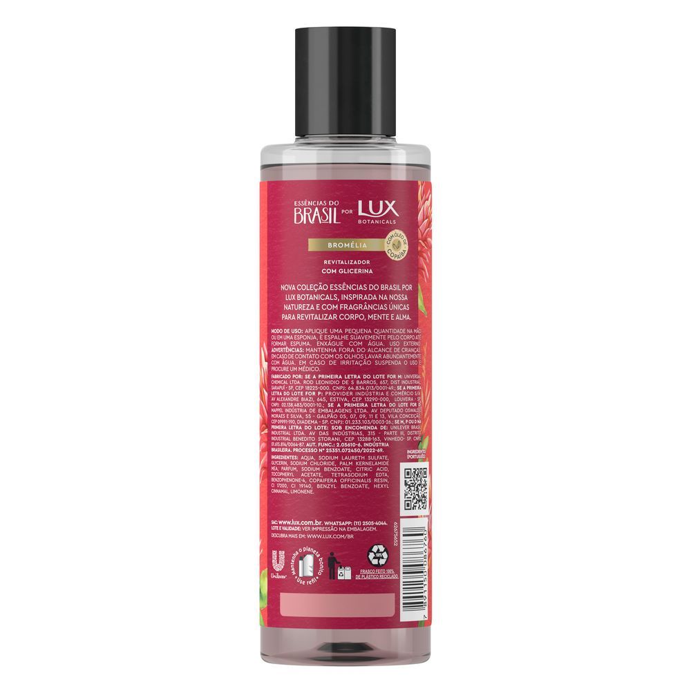 • O sabonete líquido Essências do Brasil por Lux Botanicals Bromélia possui uma fragrância única que revitaliza corpo, mente e alma • Sua fórmula contém glicerina e óleo de copaíba, ingredientes com propriedades altamente hidratantes • Experimente o sabonete líquido com sensação hidratante para o corpo Bromélia e diversão de um banho revitalizador • Sinta na pele o poder da natureza do Brasil • Experimente o sabonete líquido Bromélia e hidratação de um banho revitalizador • A nova Coleção Essências do Brasil por Lux Botanicals, é inspirado na nossa natureza com fragrâncias únicas para revitalizar corpo, mente e alma. Conheça o sabonete líquido com sensação hidratante para o corpo Essências do Brasil por Lux Botanicals Bromélia 300 ml, com poder revitalizador e formulado com ingredientes naturais, transformando seus banhos em puros momentos de prazer. Cada inovação foi especialmente criada para revitalizar seu corpo, mente e alma. Uma coleção inspirada na exuberância da natureza do Brasil, foi baseada em nossos rituais e tradições para transformar seu momento de autocuidado em uma rotina de beleza diária. A fragrância da Bromélia, típica da Mata Atlântica, possui um acorde frutado fresco e fluido com notas cítricas. A fórmula do sabonete líquido com sensação hidratante para o corpo Essências do Brasil por Lux Botanicals Bromélia contém óleo de copaíba, ingrediente com propriedades altamente hidratantes, além de conter glicerina para evitar o ressecamento da sua pele. Além disso, a marca possui outras opções de fragrâncias na linha: Flor do Cajueiro, Dama-da-Noite e Vitória-Régia. A coleção oferece formatos inéditos que trazem sensações e texturas únicas, assim como uma nova garrafa transparente, moderna e sustentável, feita 100% de plástico reciclado e reciclável e com opção de refil, com 70% menos plástico*, para manter o planeta saudável. Transforme sua experiência de banho em um momento único e prazeroso com os benefícios dos sabonetes Essências do Brasil por Lux Botanicals.