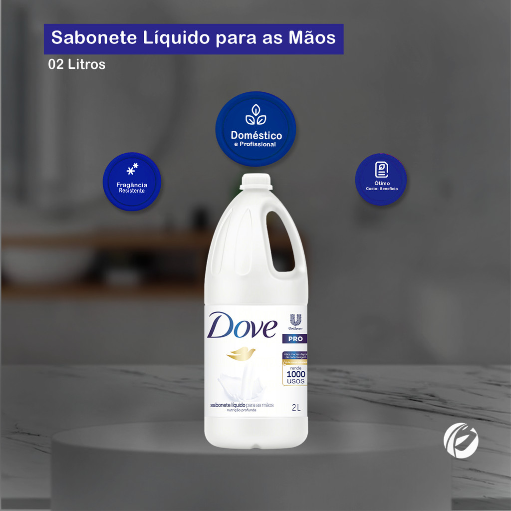 Sabonete Líquido Original 2L Dove Sabonete Líquido Dove Profissional contém 1/4 de Creme Hidratante, ajudando a nutrir a pele, deixando-a macia e suave a cada uso. Com textura cremosa e fácil de espalhar, o sabonete líquido Dove produz uma espuma rica e suave que limpa delicadamente, proporcionando uma sensação refrescante e agradável. Sua fragrância clássica e suave é reconhecida mundialmente e agrada a diferentes perfis de usuários, tornando-o uma excelente escolha tanto para uso pessoal quanto profissional, rende até 1.000 usos. Indicação de Uso: - Lavagem das mãos e corpo. Cor: Branco Fragrância: Original Embalagem: 01 Galão de 2L