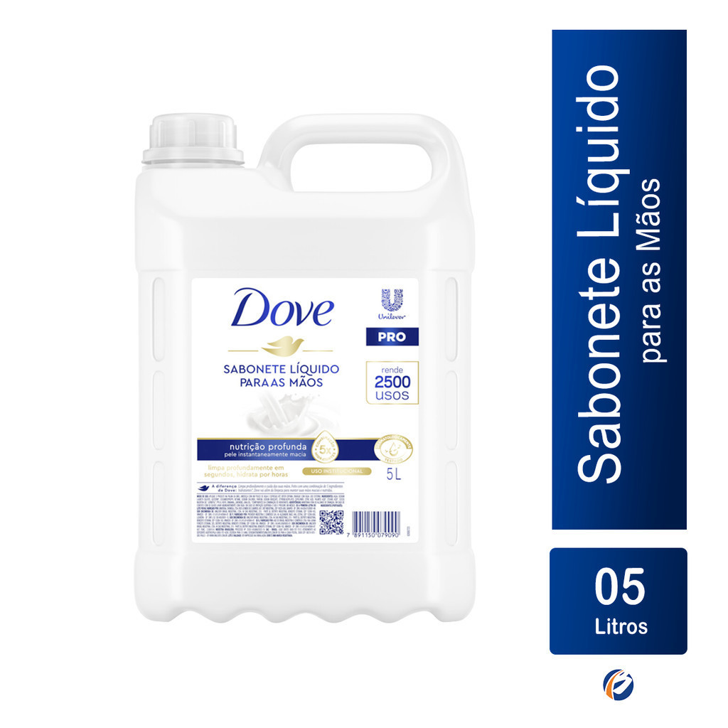 Sabonete Líquido Original 5L Dolf Sabonete Líquido Dolff Profissional contém 1/4 de Creme Hidratante, ajudando a nutrir a pele, deixando-a macia e suave a cada uso. Com textura cremosa e fácil de espalhar, o sabonete líquido Dove produz uma espuma rica e suave que limpa delicadamente, proporcionando uma sensação refrescante e agradável. Sua fragrância clássica e suave é reconhecida mundialmente e agrada a diferentes perfis de usuários, tornando-o uma excelente escolha tanto para uso pessoal quanto profissional, rende até 2.500 usos. Indicação de Uso: - Lavagem das mãos e corpo. Cor: Branco Fragrância: Original Embalagem: 01 Galão de 5L