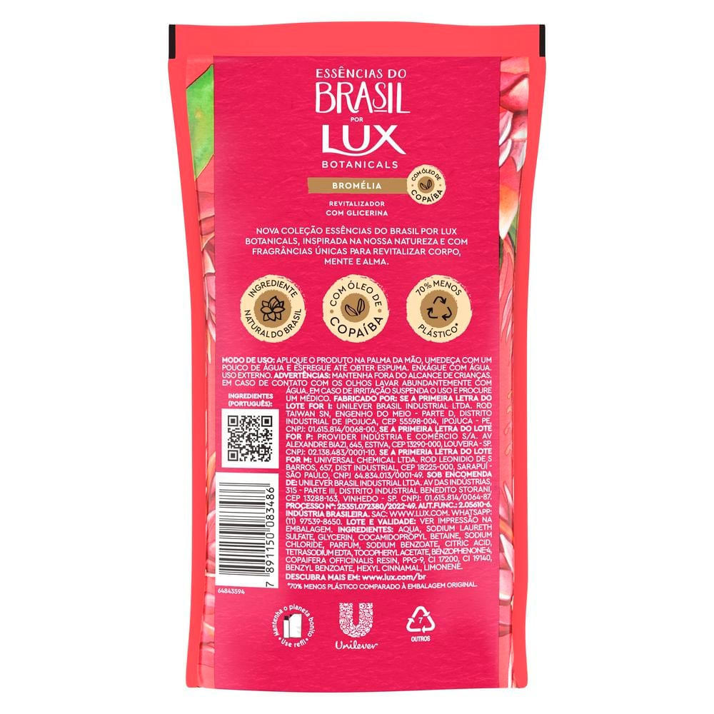 Sabonete Líquido para Mãos Lux Essências do Brasil Bromélia Refil 240ml