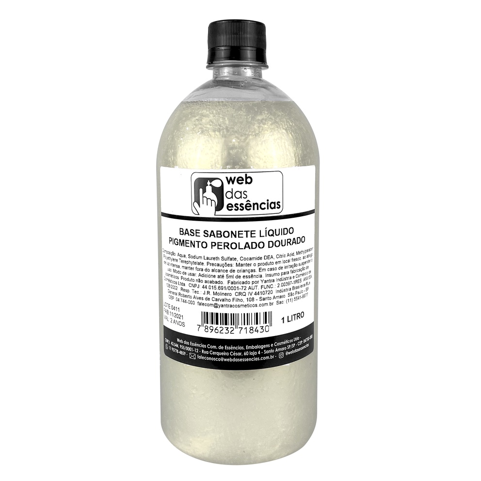 Sabonete líquido com pigmento (conhecido como mica) pronto para o uso ou fracionamento. Elaborado com componentes de alta qualidade se distinguindo pela estabilidade e seu brilho intenso. O pigmento é totalmente eliminado no enxágue, sem aderir à pele. Pelo pequeno tamanho das partículas, pode ser utilizado na grande maioria de modelos de válvulas existente no mercado. A espumação é menor que as do sabonete comum, e não pode ser adicionado ativo espumantes pois quebra a viscosidade do produto. Recomenda-se preparar e adicionar até 10 ml de essência especial para sabonetes para perfuma-lo sempre evitando excessos. Se desejar, poderá adicionar extratos glicólicos em uma concentração máxima de 20 ml por litro de sabonete líquido pronto. É importante sempre antes do preparo em grandes quantidades, ser preparada uma pequena quantidade para verificar a compatibilidade da base com a essência e demais produtos que serão adicionados e após o descanso ver o resultado final. Sugestão: utilize uma essência que \"case\" com a cor escolhida. Conteúdo: frasco pet com 1 litro de produto. Você está adquirido um produto elaborado e fabricado dentro das normas e legislações da ANVISA. Foto meramente ilustrativa, podendo haver alterações