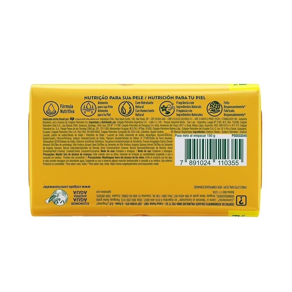 Características do Produto: Marca: Palmolive Segmento: Sabonete Linha: Sensação Luminosa Especificações Gerais: Área de Atuação : Corporal Ação Esperada do Produto : Deixar a Pele Radiante;Iluminar;Perfumar Segmento: Sabonete em Barra Dimensões: Altura: 10cm Largura: 6,2cm Profundidade: 3,5cm Peso: Peso bruto: 154g Composição: Sodium oleate/sodium palmitate/sodium laurate (jabón de sodio), aqua, glycerin, sodium chloride, parfum, titanium dioxide (CI 77891), iron oxides (CI 77492), pentasodium pentetate, etidronic acid, prunus amygdalus dulcis (sweet almond) oil/vitis vinifera (grape) seed oil/argania spinosa kernel oil, hexyl cinnamal, linalool, coumarin, butylphenyl methylpropional, citronellol. Modo de uso Molhar o corpo ou a região desejada, ensaboar normalmente e enxaguar. Fornecedor: Palmolive