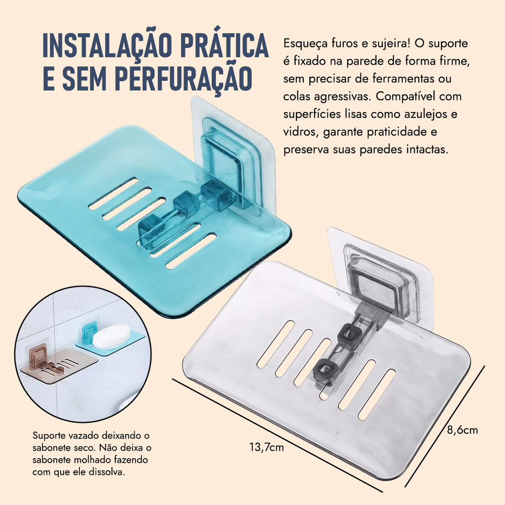Saboneteira Acrílica Vazado Resistente Parede Adesiva Sem Furadeira Evita Sabonete Derreter