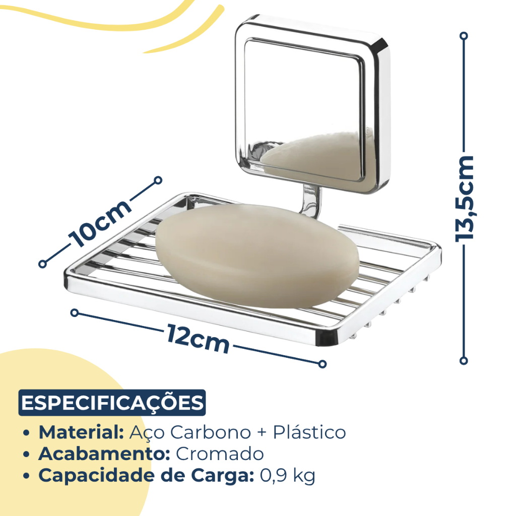 Saboneteira Banheiro Suporte Dupla Face 3M Parede Porta Sabonete Cromado Sem Furo Future