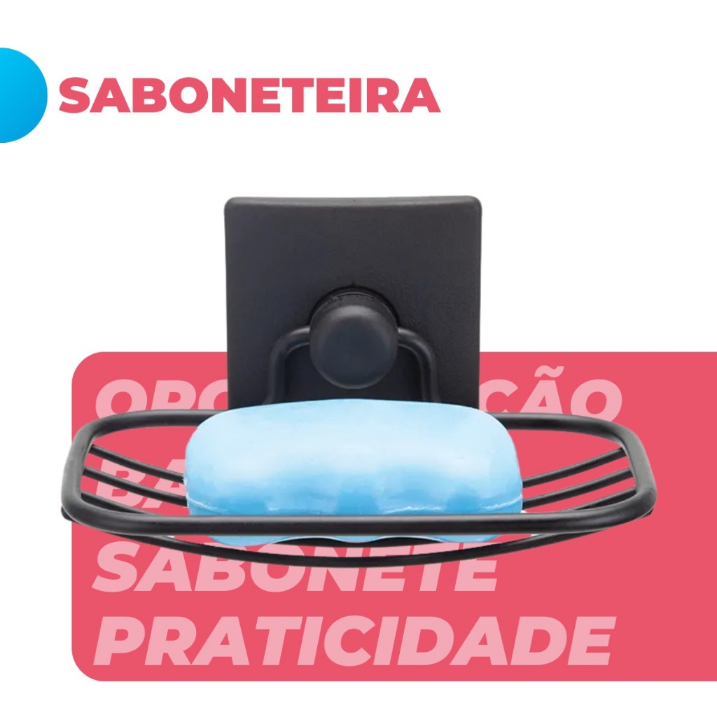 Saboneteira Banheiro Suporte Parede Banheiro Lavabo Porta Sabonete em Barra 3M Sem Furo Preto Arthi Com design classico e elegante, a saboneteira e ideal para organizar seu banheiro. A fixacao e atraves de fita adesiva dupla face 3M extra fortes, sem o uso de ferramentas e furadeira. Alem do tradicional tratamento superficial da Arthi os produtos sao revestidos com uma camada extra do protetivo especial, garantindo cores vivas, alem de maior resistencia contra ferrugem. Especificacao Tecnica: . Fabricante: Arthi . Tamanho (CxLxA): 12,8 x 9,9 x 6,7 cm . Peso Suportado: 700 g . Cor: Preto Instalacao: Correto: superficies lisas, brilhantes e totalmente planas como vidros, espelhos, azulejos, ceramicas nao porosas, pinturas lisas e brilhantes (epoxi) e laminados. Incorreto: superficies curvas e porosas, como papel de parede, couro, cimento, madeira, etc. Fixacao: . Limpar a superficie com pano limpo e alcool. . Retirar o Papel Protetor Adesivo. . Colar o gancho cabide toalha e segurar por 10 segundos. . PRONTO, agora aguarde 1 hora ate o adesivo fixar 100%. Conteudo da Embalagem: . 01 Saboneteira Importante: Garantia de 3 Meses. Valor Unitario. Imagens Meramente Ilustrativas. Nao nos responsabilizamos pelo mau uso do produto
