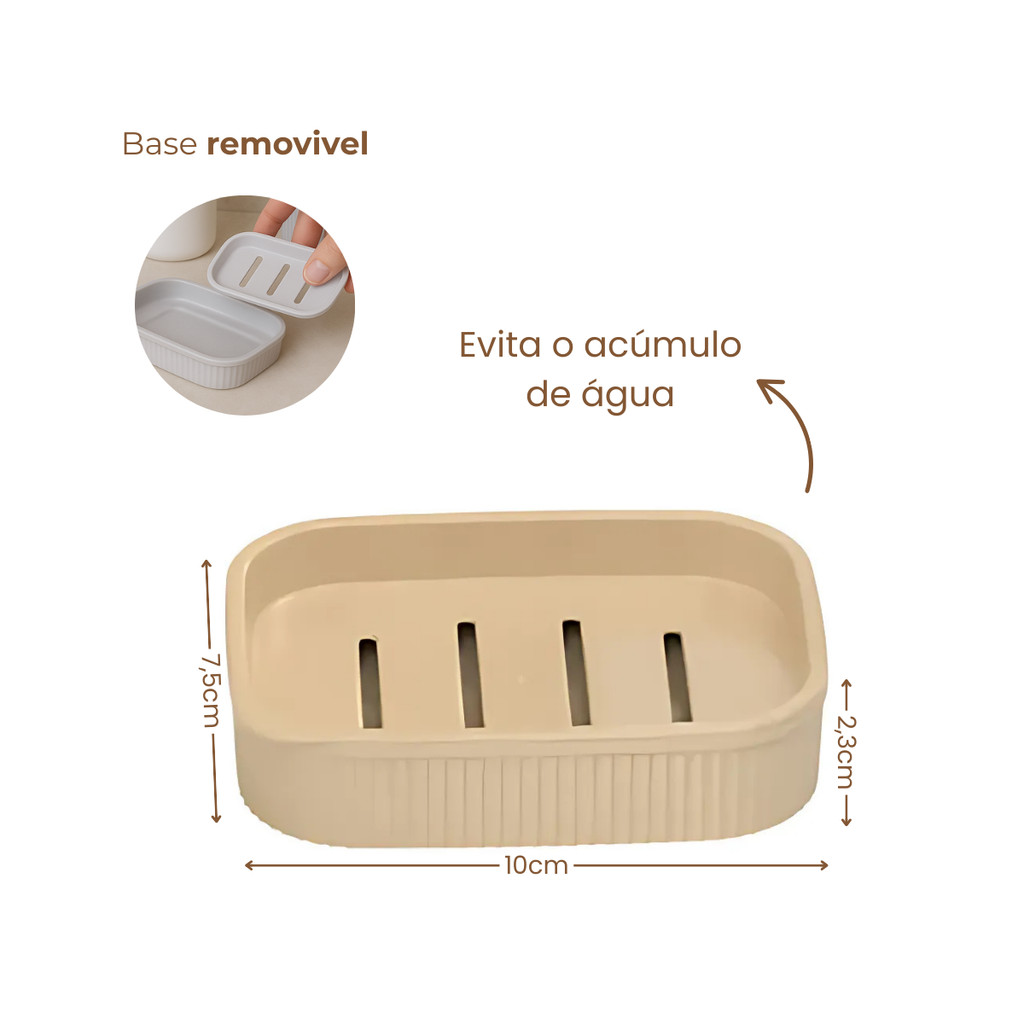 Saboneteira Classic A Saboneteira Classic combina funcionalidade e elegância para o seu banheiro. Produzida em plástico resistente e de alta qualidade, possui design sofisticado com acabamento texturizado, agregando charme à decoração. Seu formato retangular com grelha interna removível mantém o sabonete seco por mais tempo, evitando o acúmulo de água e prolongando sua durabilidade. Compacta e prática, é ideal para uso diário, fácil de limpar e perfeita para organizar o espaço de forma higiênica e estilosa. Características: - Material: Plástico resistente - Formato retangular com grelha interna removível - Mantém o sabonete seco e limpo - Fácil de limpar e transportar - Ideal para banheiros, lavabos e áreas de serviço