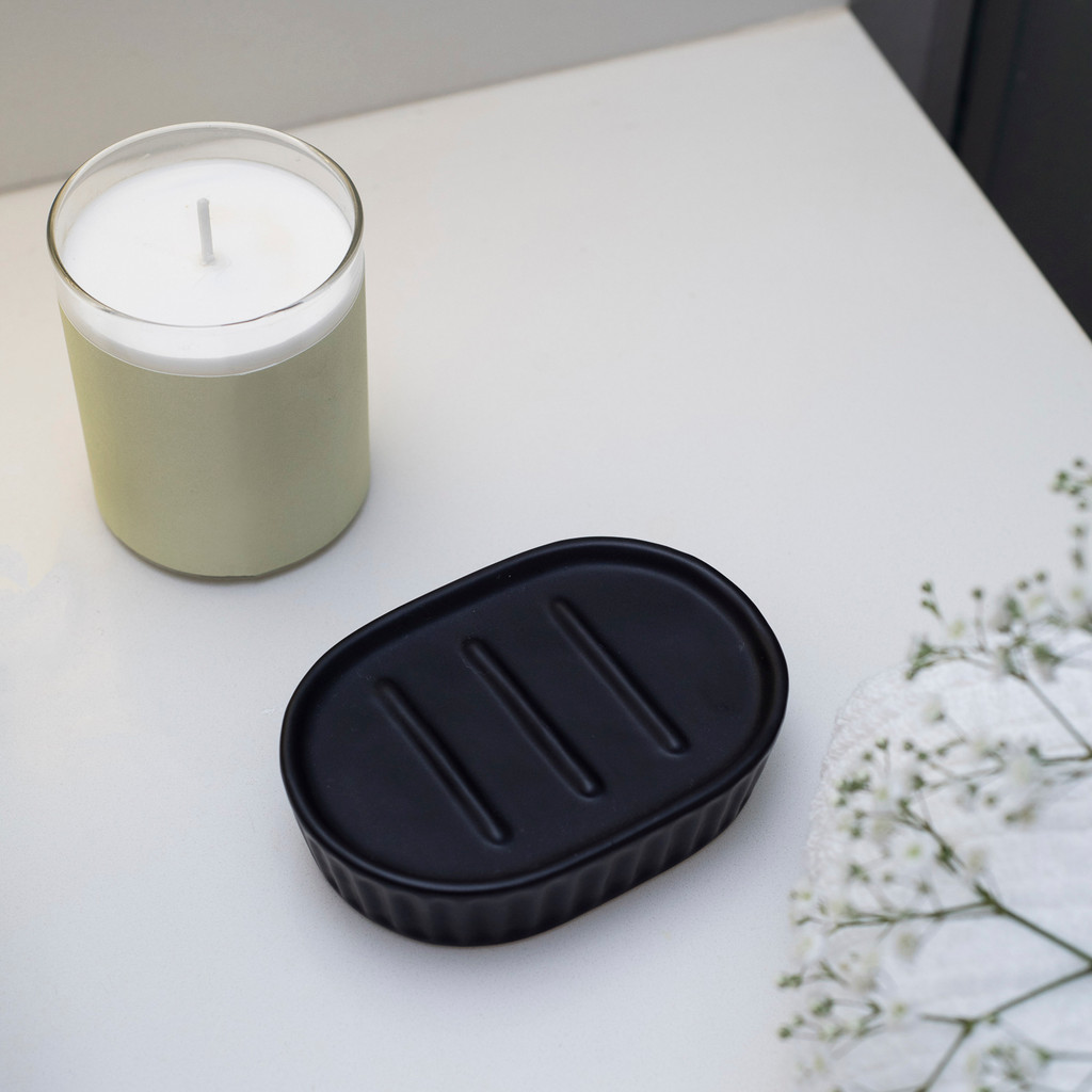 Saboneteira de Cerâmica Listras Preto - Oikos