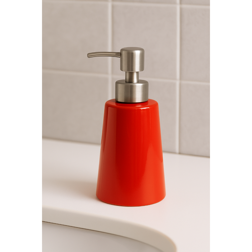 Saboneteira de vidro ,nas cores: preto e vermelho para sabonetes liquido, um charme para o ambiente, traz delicadeza à decoração do lavabo. COMPOSIÇÃO:100% VIDRO + VALVULA PUMP:AÇO CAPACIDADE: 220ML DIMENSÃO: 7X17CM