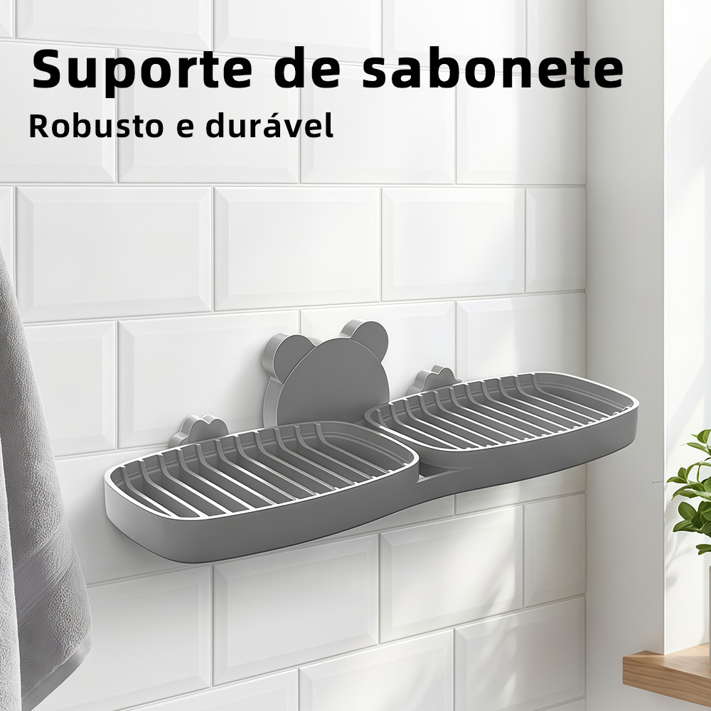 Saboneteira Dupla 2 Camadas Caixa Organizadora para Banheiro Auto-Adesiva na Parede Não Fura Urso Decorativo Moderno