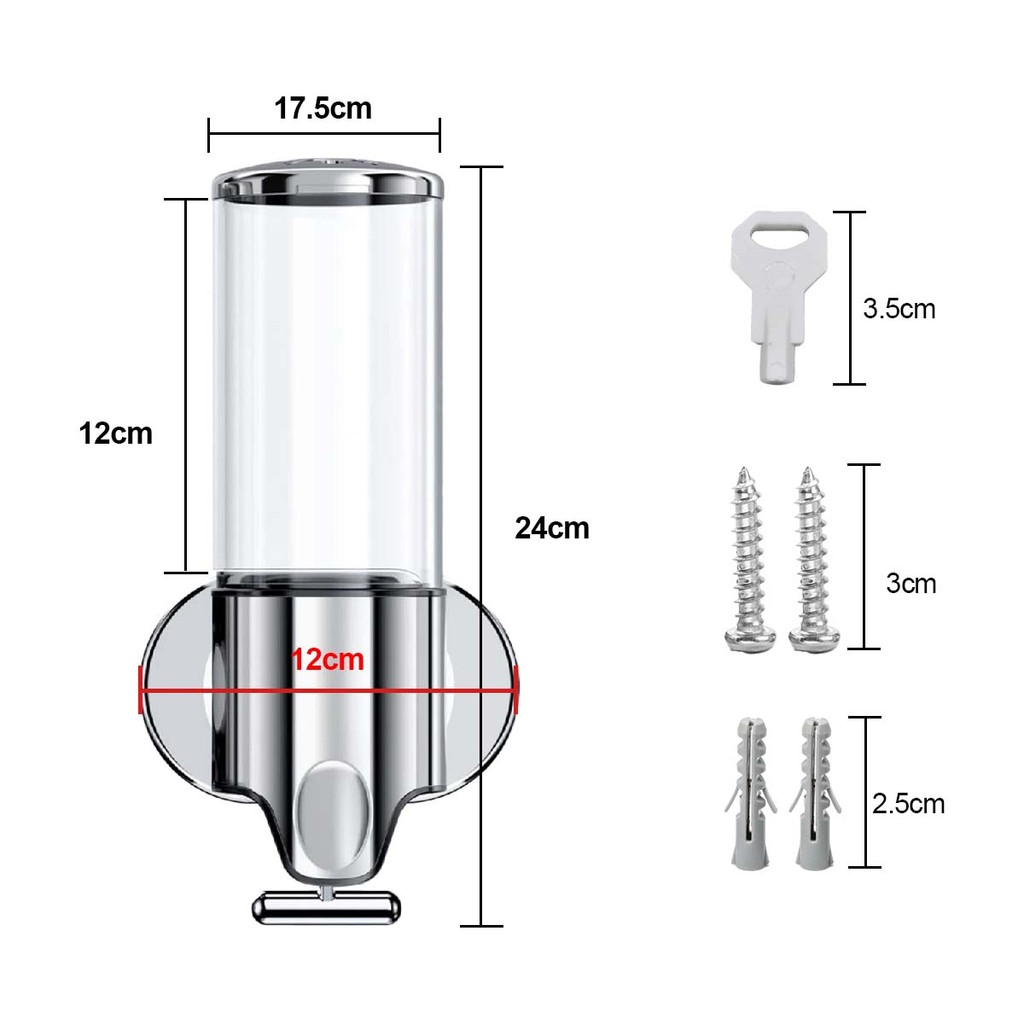 Olá Leia a descrição do anúncio e você encontrará a maioria das respostas! Por favor consulte a imagem para o tamanho do produto Lista de produtos: Dispensador de fluido de 1 peça Cor: Prata Tamanho: Altura 24 cm, Comprimento 12 cm Capacidade de 500ml por célula Atenção: Após o recebimento do produto, haverá uma camada de película protetora branca. Rasgue - o para revelar a cor prateada original do produto. Fixado na parede, fácil de instalar: basta pendurá-lo na parede com os parafusos incluídos com o produto. A capacidade de cada compartimento é de 500 ml, permitindo usar sabonete, shampoo, condicionador, gel de banho e até detergente a qualquer momento.Seu design cromado confere um toque de elegância e sofisticação ao ambiente. Este dispensador pode ser usado em uma variedade de ambientes, como banheiros, cozinhas, escritórios, etc.São indicados para armazenar produtos de cuidados com as mãos, xampus, loções e líquidos, e são muito utilizados. A cavidade transparente pode ver claramente o líquido restante e reabastecê-lo a tempo.Basta desparafusar a tampa e despejar o sabonete ou loção no dispensador.A parte inferior do dispensador de sabão de banho é equipada com um bico de separação de saída, que pode efetivamente guiar o fluxo da saída.A alça ergonômica economiza muito espaço.