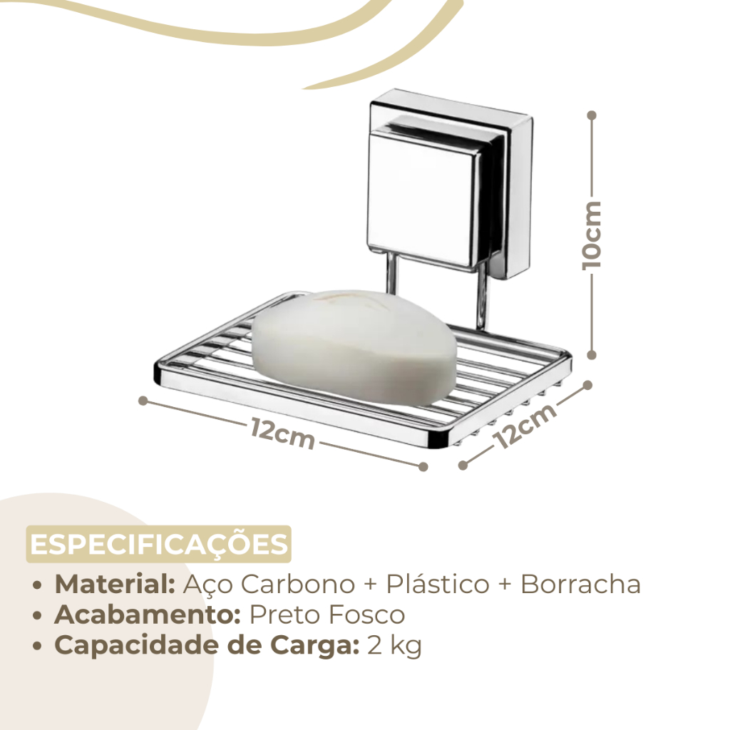 Saboneteira Porta Sabonete Banheiro Lavabo Box Ventosa Sem Furo Cromado Future