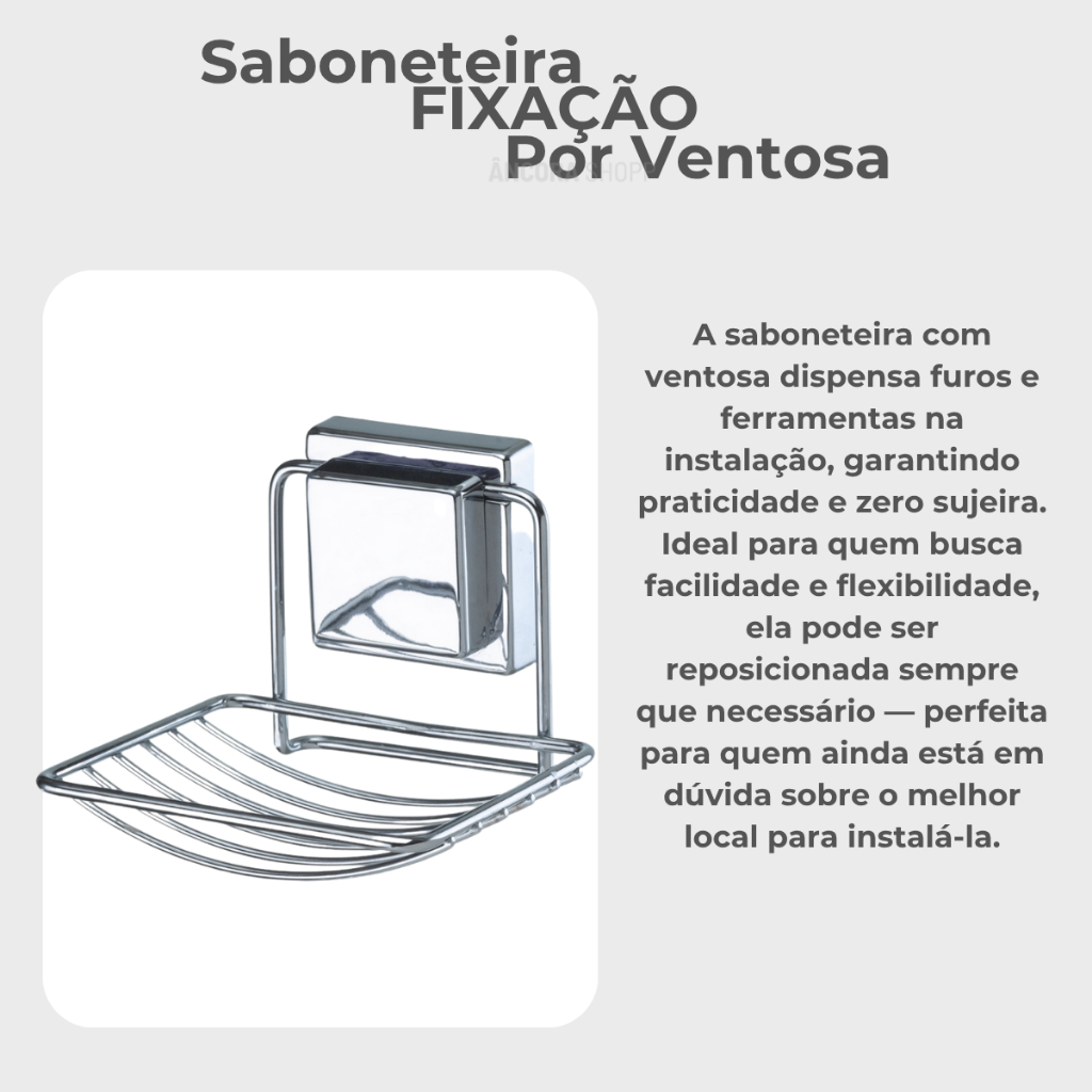 Saboneteira Porta Sabonete Com Ventosa para Banheiro Sem Furo Cromado Arthi Aço Inox