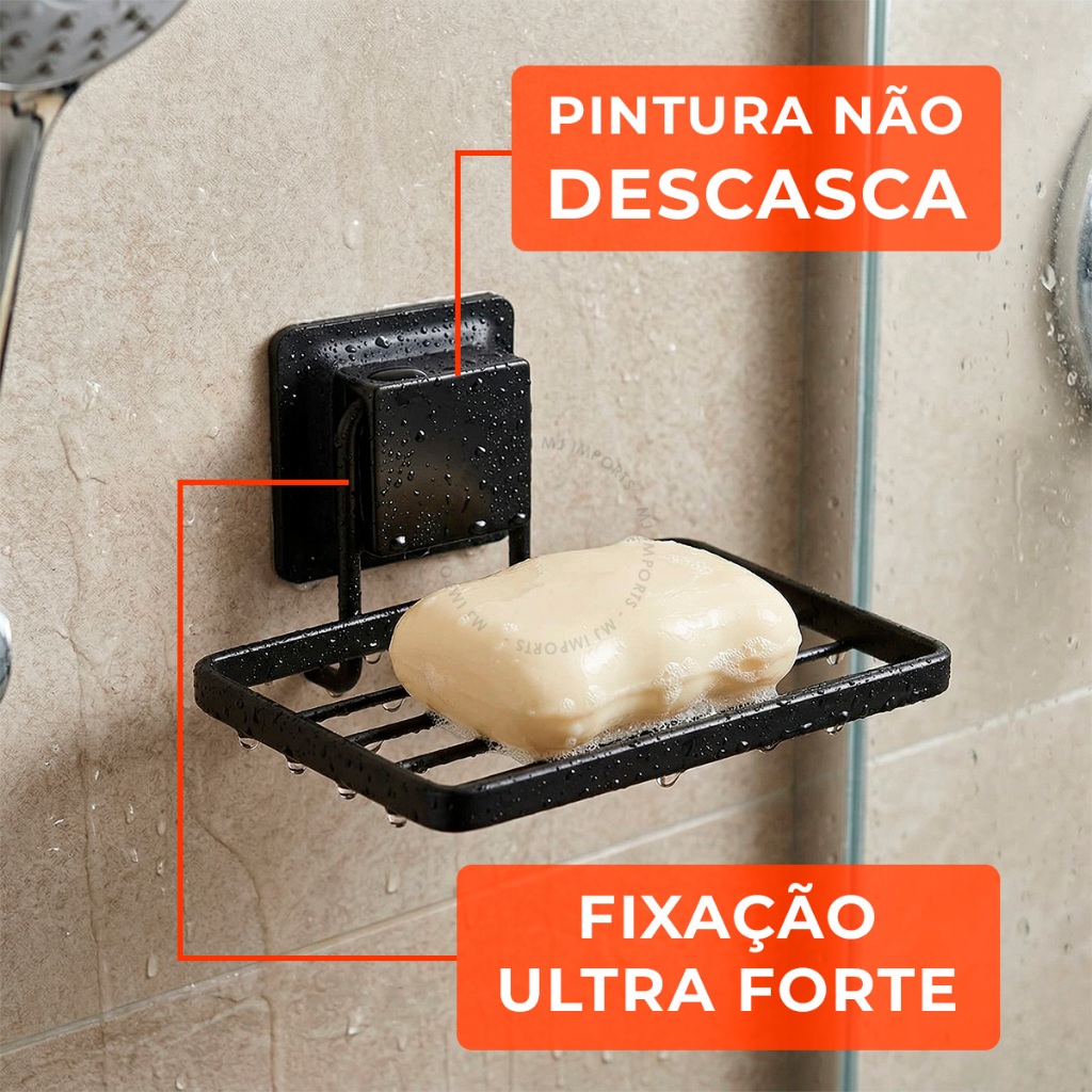Saboneteira Sem Furo Sucção Inox Fixação Forte Parede Resistente Preta Cromada Banheiro
