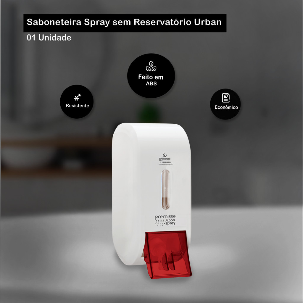 Saboneteira Spray Compacta Branca e Vermelha 400ml Urban Premisse com Logo Braslimpo
