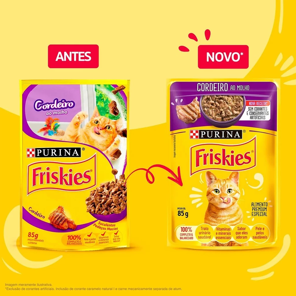 | Sachê Friskies® Cordeiro ao Molho 85g | Purina - Caixa Fechada com ... este produto | R$ 39,50 | — | 5.0/5 | 195 |
