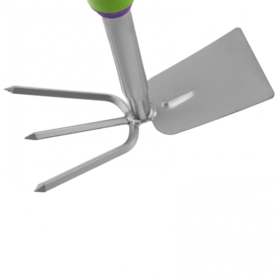 Sacho Combinado Palisad CONNECT – Modelo 630088 (80 x 280 mm) Projetado para capinar, soltar o solo e perfurar buracos com precisão, o Sacho Combinado CONNECT é ideal para áreas estreitas e de difícil acesso. Com lâminas dentadas e trapezoidais, oferece uma abordagem multifuncional para o manejo do solo. Vantagens Resumidas: Durabilidade e Confiabilidade: Construção em aço de alta resistência, preparada para uso intenso e prolongado. Proteção Contra Corrosão: Revestimento em esmalte em pó protege contra ferrugem, prolongando a vida útil. Ergonomia Aprimorada: Cabo plástico texturizado com relevo antiderrapante, garantindo segurança e conforto no uso. Armazenamento Prático: Orifício no cabo permite pendurar a ferramenta com facilidade e manter o espaço organizado. Flexibilidade com Extensões: Compatível com cabos Palisad 63016 (500 mm) e 63017 (800 mm), adaptando-se a diferentes necessidades. Leveza: Peso de apenas 280 g, ideal para trabalhos prolongados sem causar fadiga.