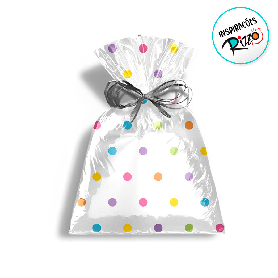 Saco Adesivado Decorado com Aba - Dots Colors - 100 unidades - Cromus - Rizzo