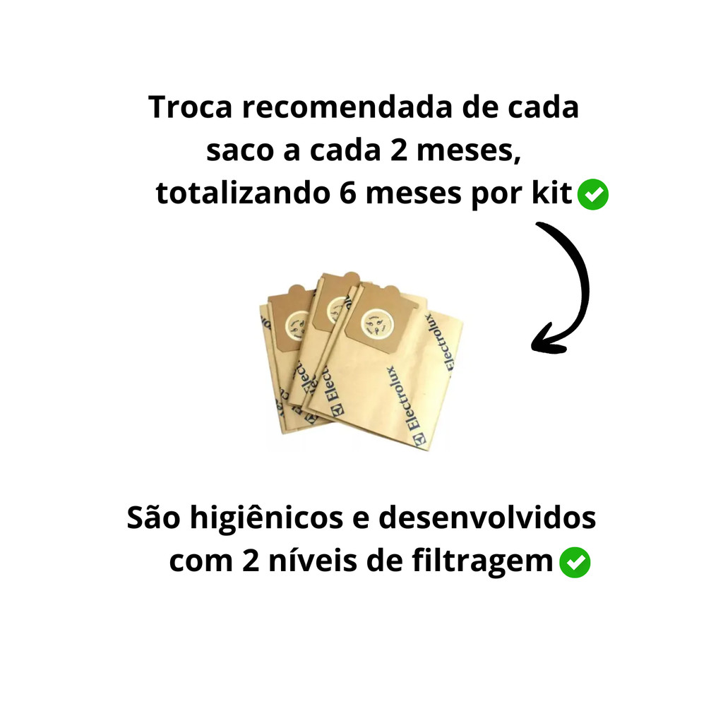 Saco Aspirador De Pó Electrolux Hidrovac E Gt12i Original - Filtro Descartavel Embalagem com 03 Novo