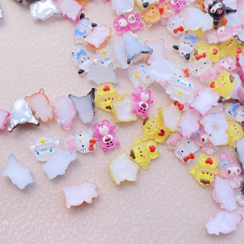 Saco de Carne Sanrio Novo Estilo Manicure Acessórios de Decoração Pudim Cão Brilhante Resina Padrão de desenho animado Kuromi Melody 3D DIY 30 Peças