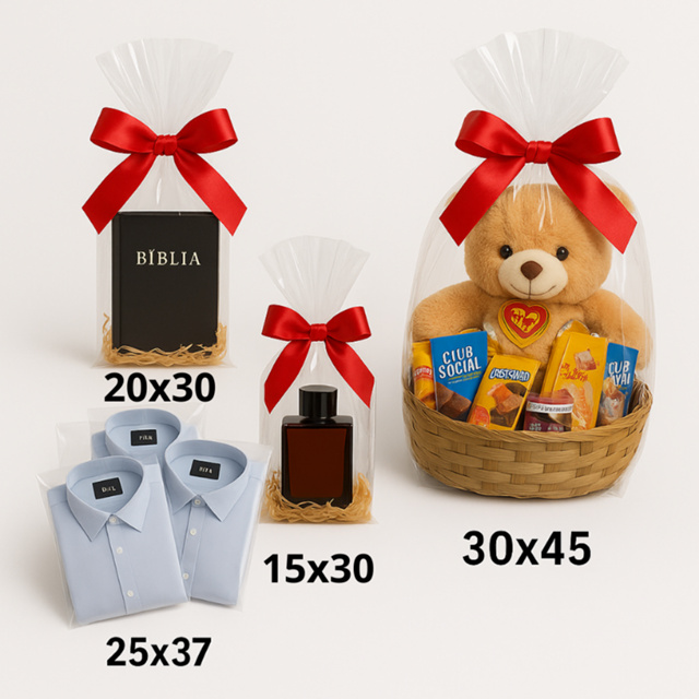 Saco de Celofane Transparente Premium Para Presente 15x30/25x37/30x45 Kit 50 Dias dos Namorados.