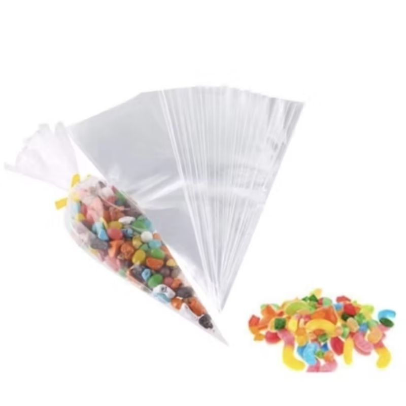 Saco de Cone Incolor Transparente Tamanho 18x30 Cm Com 50 Unidades Para Festas. Entregar Rápida.