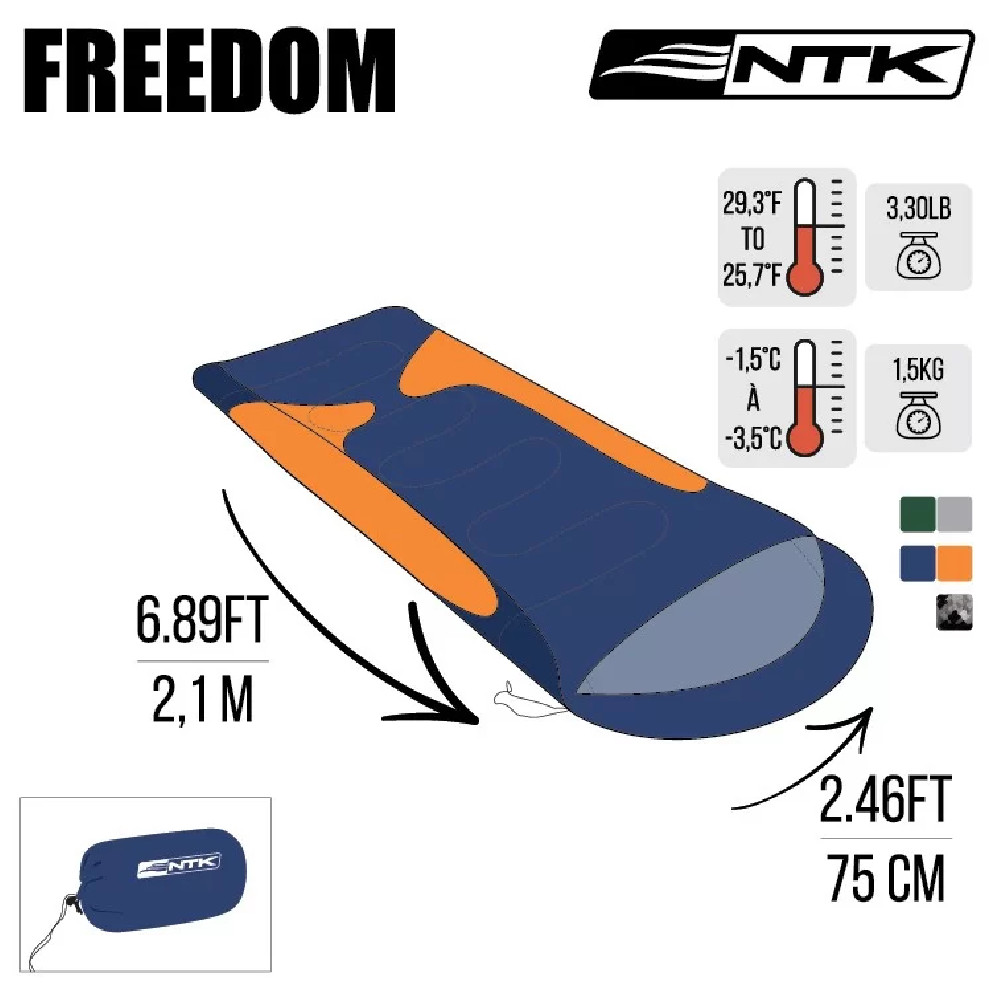 Saco de Dormir Freedom -1,5°C a -3,5°C Azul e Laranja NTK