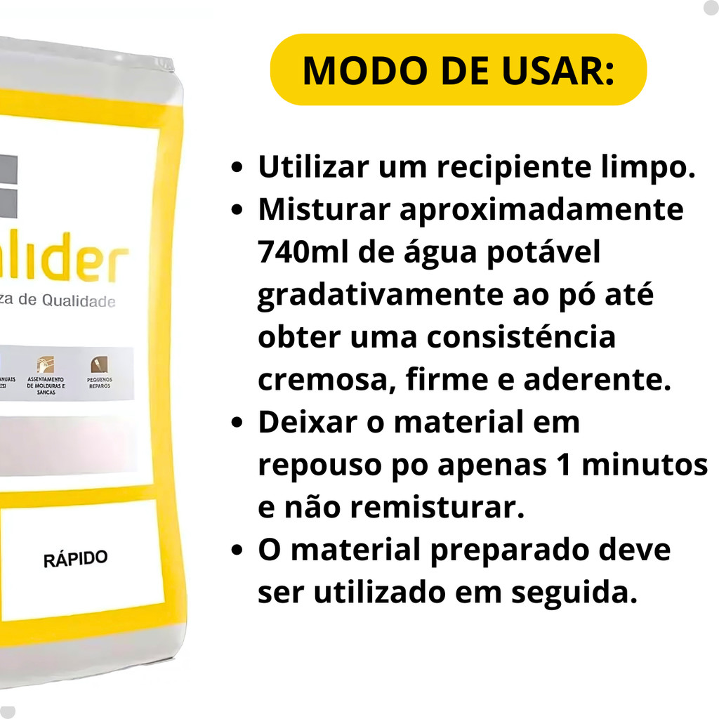 | Saco De Gesso Rápido 5kg P/ Molduras Reparos Manuais Branco este produto | R$ 27,25 | — | 4.9/5 | — |