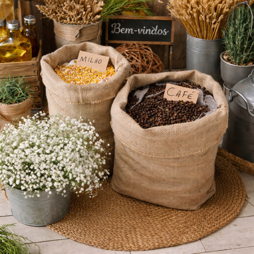 Saco de Juta Decorativo Rústico Chic | Organização e Decoração Transforme sua decoração com o saco de juta decorativo, ideal para quem busca um estilo rústico chic, natural e elegante. Produzido em juta resistente e de alta qualidade, é perfeito para decoração de ambientes, exposição de produtos, festas temáticas e organização criativa Muito utilizado em cozinhas, áreas gourmet, cafés, eventos rústicos, festas juninas, fazendinha, vitrines e cenários para fotos, o saco de juta valoriza qualquer espaço com um visual acolhedor e artesanal. ✨ Características do produto: Material: Juta natural Estilo: Rústico chic / campestre / farmhouse Uso: Decorativo, organizador ou expositor. Ideal para grãos, flores secas, arranjos e produtos artesanais Reutilizável e sustentável 📸 Atenção: Imagem ilustrativa. Grãos, flores e itens decorativos não acompanham o produtto. saco de juta decorativo, saco de juta rústico, decoração rústica, decoração fazendinha, saco de juta natural, decoração festa junina, decoração rústico chic, saco de juta para decoração, decoração campestre, saco organizador de juta, juta decoração