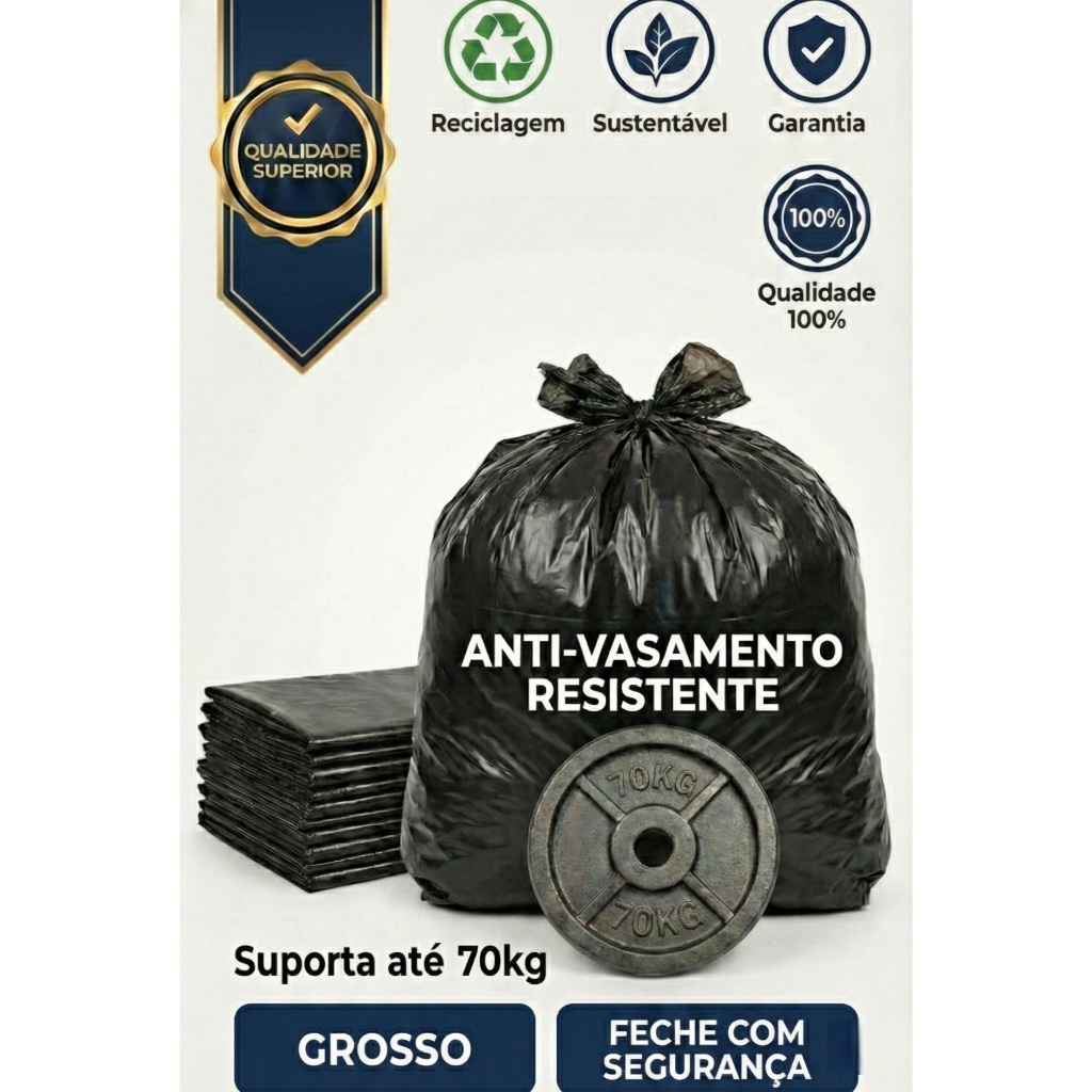 🗑️ SACO DE LIXO 20L SUPER REFORÇADO 110 MICRAS — NÃO RASGA! 🔥 QUALIDADE PROFISSIONAL 🔥 RESISTÊNCIA MUITO SUPERIOR AOS COMUNS 🔥 VOCÊ USA MENOS SACOS NO MÊS ⭐ ESPECIFICAÇÕES: 📦 Capacidade: 20 Litros 🧱 Espessura: 110 Micras (SUPER GROSSO) 📏 Medidas: 40 x 55 cm ⚫ Cor: Preto profissional 💪 Alta resistência contra rasgos e vazamentos 💥 IDEAL PARA: ✔️ Banheiro ✔️ Cozinha ✔️ Escritório ✔️ Condomínio ✔️ Uso intenso diário 🚨 DIFERENCIAL REAL: Enquanto sacos finos te fazem usar 2 ou 3 por lixeira… Este resolve com apenas 1. Mais resistência. Mais praticidade. Mais economia. ♻️ Compre com propósito: escolha um produto que incentiva a reciclagem e reduz o desperdício.