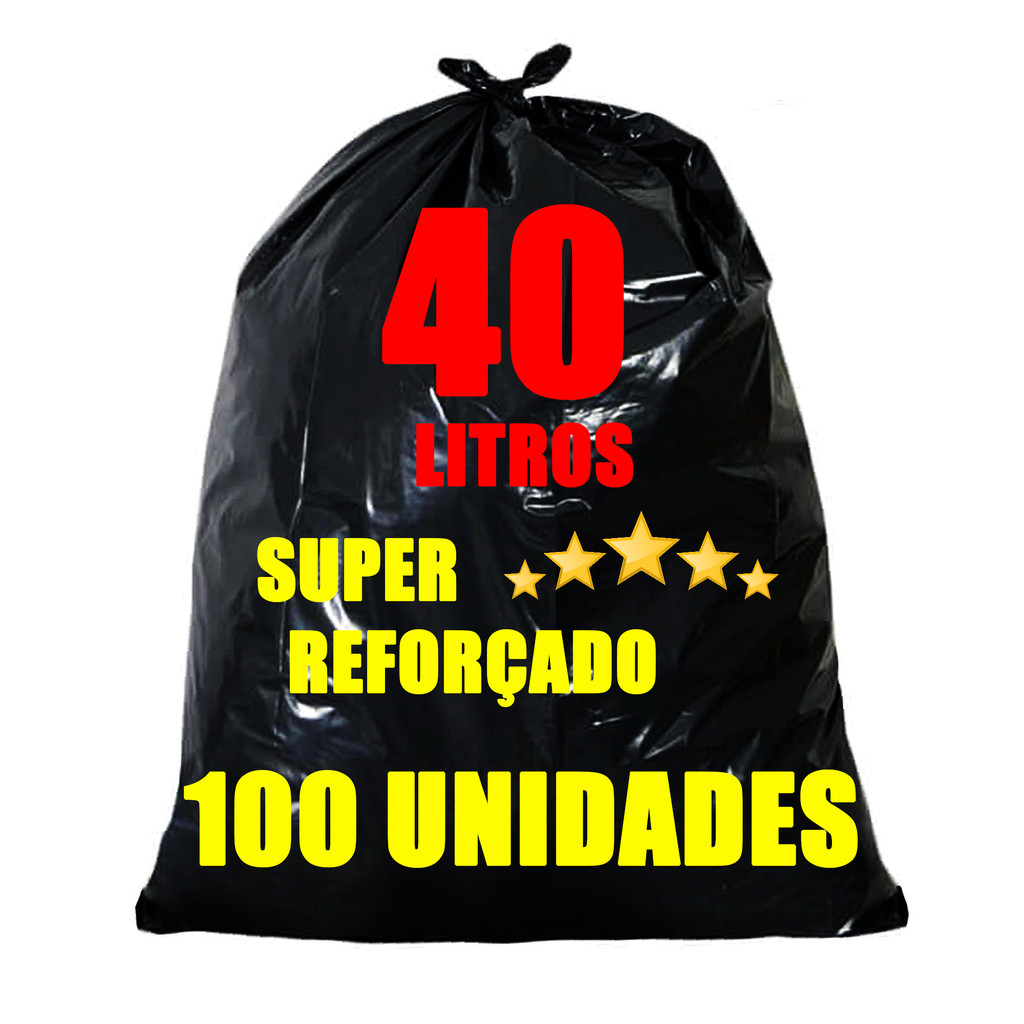 Saco De Lixo Preto 40 Litros Resistente 100 Unidades Pronta Entrega Envio Rápido