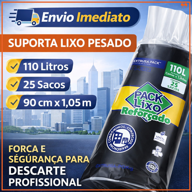 🗑️ SACO DE LIXO REFORÇADO 110L 🗑️O Saco de Lixo Reforçado Pack Lixo 110 Litros foi desenvolvido para quem precisa de alta resistência, grande capacidade e segurança no descarte, mesmo com lixo pesado 📦Ideal para condomínios, comércios, empresas, cozinhas industriais, áreas externas e residências com alto volume de lixo. ✅ PRINCIPAIS BENEFÍCIOS ✔️ Reforçado – suporta lixo pesado sem rasgar ✔️ Grande capacidade: 110 litros ✔️ Uso profissional e residencial 📦 INFORMAÇÕES DO PRODUTO • Capacidade: 110 Litros • Quantidade: 25 sacos • Dimensões: 90 cm x 1,05 m • Tipo: Reforçado • Cor: Preto 🏢 INDICADO PARA 🏢 Condomínios 🛒 Comércios 🍽️ Restaurantes e cozinhas 🏠 Residências 🏭 Empresas e indústrias