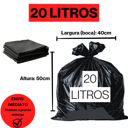 Sacos de Lixo Resistentes (20L, 40L, 60L e 100L) Sacos de lixo Resistentes, desenvolvidos para garantir resistência, praticidade e segurança no descarte diário. Produzidos com material de qualidade, FINOS, mas RESISTENTES, projetados para limpezas domésticas com facilidade e se adaptam perfeitamente a diferentes tamanhos de lixeiras. Disponíveis nas capacidades de 20, 40, 60 e 100 litros, são ideais para uso residenciais, atendendo desde o lixo leve do dia a dia até volumes maiores. Diferenciais do produto: ✅ Alta resistência e durabilidade ✅ Ótima vedação contra vazamentos ✅ Indicado para cozinhas, banheiros, e escritórios ✅ Produzido com material reciclado, contribuindo para o meio ambiente ______________________ ESPECÍFICAÇÕES DO PRODUTO: ______________________ MEDIDAS: • 20LITROS – Largura (Boca): 40cm (com abas abertas) | Comprimento: 50cm • 40LITROS – Largura (Boca): 50cm (com abas abertas) | Comprimento: 60cm • 60LITROS – Largura (Boca): 60cm (com abas abertas) | Comprimento: 70cm • 100LITROS– Largura (Boca): 75cm (com abas abertas) | Comprimento: 90cm ______________________ Cor: Preto Composição: Polietileno e Pigmento. Micra: (Espessura): 0.6 ______________________ Capacidades disponíveis: 20 litros – ideal para lixeiras pequenas (banheiro e escritório) 40 litros – uso doméstico geral 60 litros – cozinhas e áreas com maior volume 100 litros – indicado para uso intenso. Perfeito para quem busca um saco de lixo confiável, resistente e com excelente custo-benefício para o dia a dia. Embalagens disponíveis: Fardo com 50 unidades Fardo com 100 unidades Entrega: Entrega rápida e garantida: pedidos feitos de Segunda a Sexta até às 12h são postados no mesmo dia! Pedidos realizados de Sexta a tarde e Sábado até ás 10h são enviados no SÁBADO. Produtos em pronta entrega, com envio imediato após a confirmação do pagamento. Compra segura com confiança e tradição da Oracle Embalagens. _________________ Aqui você encontra: • Atendimento próximo e dedicado • Compromisso real com a qualidade • Envio rápido e seguro Escolha já seu pacote de 50 ou 100 unidades e receba direto da fábrica!