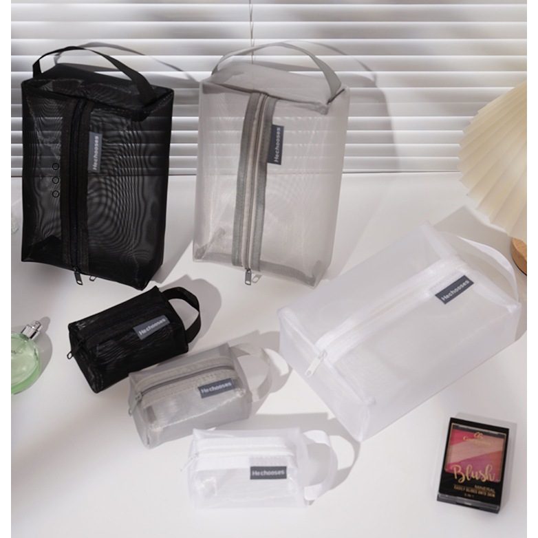 Saco De Nylon Simples Para Armazenamento De Malha Lavagem Portátil Cosméticos Transparente De Grande Capacidade