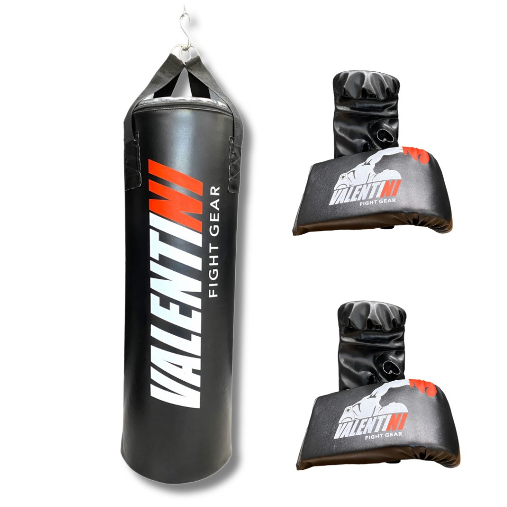 Saco de Pancada VALENTINI 90 cm - Treino Boxe Muay Thai - Alta Resistencia + 2 Luva Bate Saco Preta