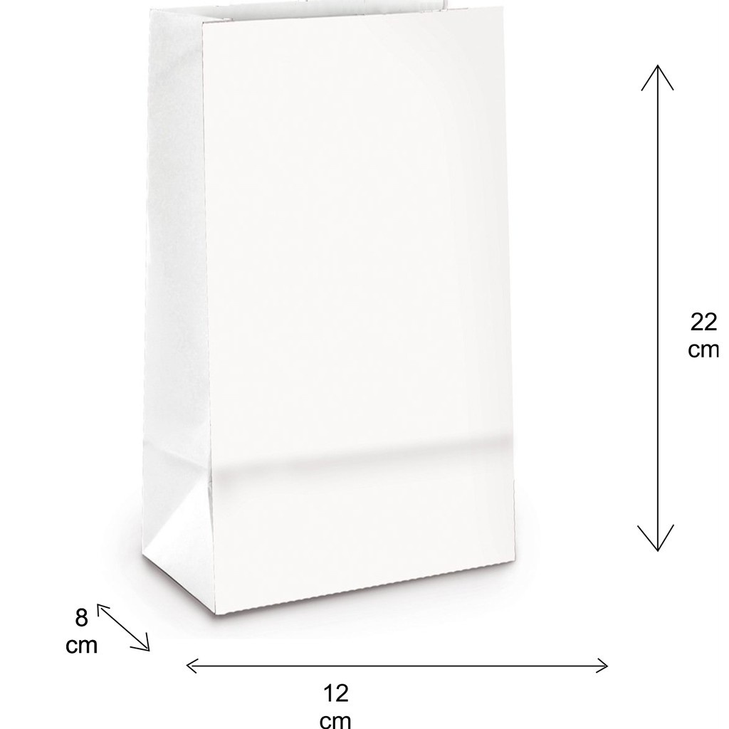 Saco De Papel Kraft Branco12x8x22 ( 100unid )Delivery, Lembrança, Transfer, Aniversário, Carimbo