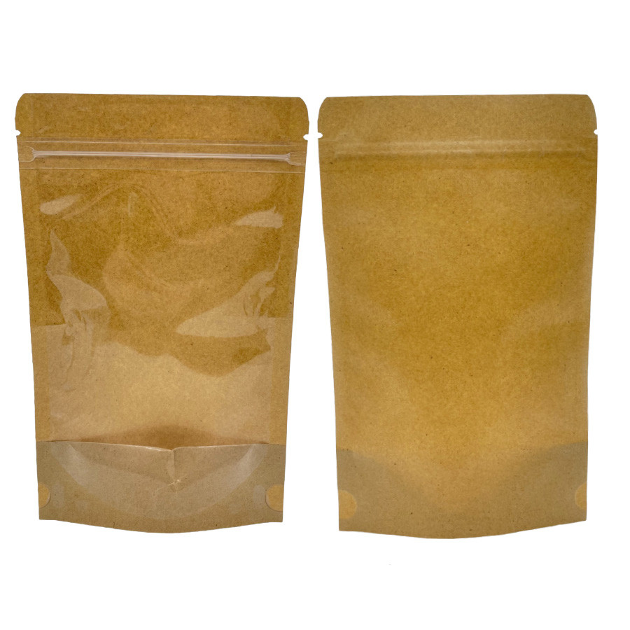 Saco de Papel Kraft Frente Transparente Stand Up Pouch Zip 10x15x3,5cm - Hermético e Impermeável Dentro e Fora - 50 un
