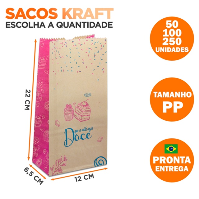 Saco de Papel Kraft Tamanho PP 22 x 12 x 6,5 cm Doces Brigadeiro Beijinho Bolo de Pote Trufa Cookie