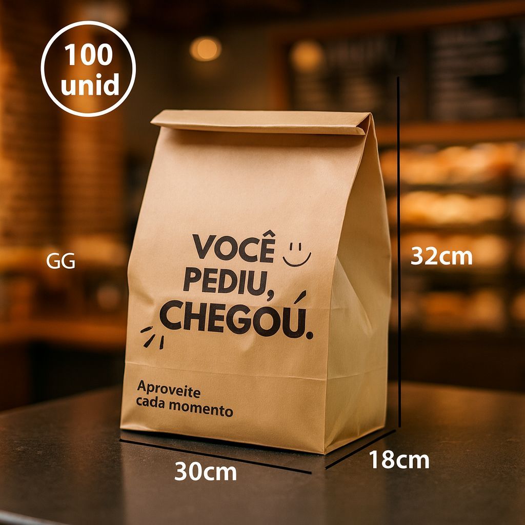 Organize e entregue seus produtos com muito mais segurança e profissionalismo! O Saco Kraft Delivery é fabricado em papel kraft de alta resistência, ideal para estabelecimentos que trabalham com lanches, hamburgueria, marmitas, confeitaria, padaria e delivery em geral. ✔ Material: Papel kraft resistente e durável ✔ Ideal para alimentos, embalagens e entregas ✔ Não amassa fácil e suporta peso ✔ Perfeito para delivery, restaurantes e food service ✔ Design clean e moderno 🌟 Indicado para: – Hamburguerias – Lanchonetes – Confeitarias – Padarias – Restaurantes – Delivery em geral 📏 Tamanhos disponíveis: PP - 18*12*25 P - 18*12*32 M - 32*22*12 ( SACO LISO SEM ESCRITA) G - 25*15*32 GG - 30*18*32 📦 Conteúdo da Embalagem: – 100 unidades Garanta já seus sacos kraft e deixe suas entregas muito mais profissionais e organizadas! 🛍️✨