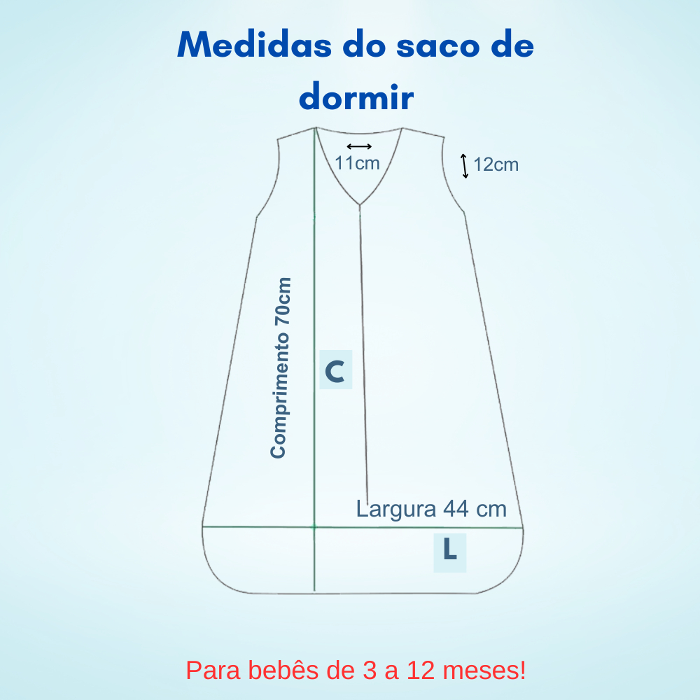 Saco Dormir Bebê 70cm x 44 cm Zíper Casulo Pijama Soninho De Bebê