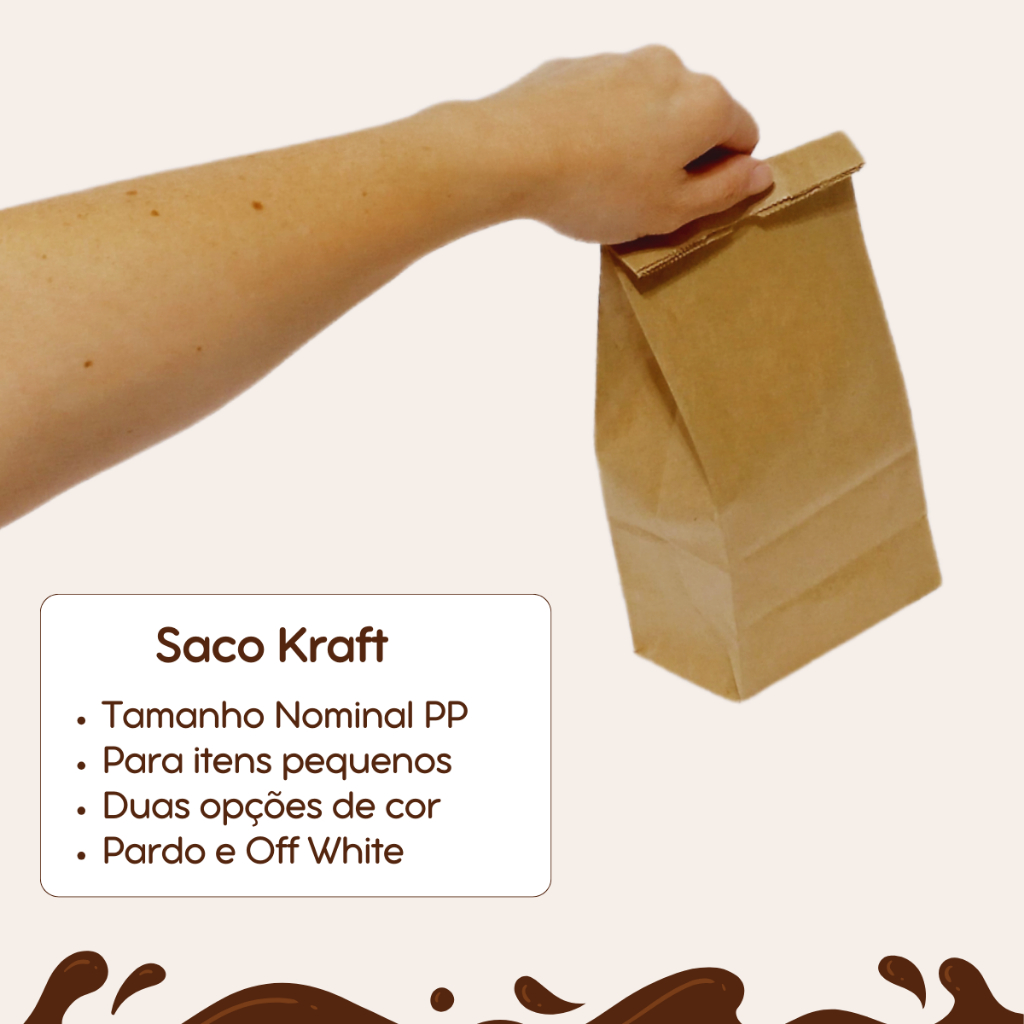 Saco Kraft Delivery Embalagem de Papel com Fundo Reto, Pacote com 200 unidades. ESCOLHA A COR: (02 Opções PARDO / OFF WHITE); TAMANHO NOMINAL PP: Medidas: 22 cm de altura x 12 cm de frente x 6,5 cm de sanfona; DESCRIÇÃO: Saco de Papel Kraft Delivery Embalagem SOS, Tamanho PP, Capacidade Nominal 2 Kg; MATERIAL: Papel Kraft Natural de fibras longas de excelente resistência (100% fibras virgens); GRAMATURA: 70 g/m²; FUNDO: Reto como nas imagens; APROVADO: para contato direto com alimentos; UTILIZAÇÕES DIVERSAS: Embalagens para Confeitarias, Lanchonetes, Mercearias, Fast-food, Artesanatos, Armarinhos, Presentes, Perfumarias, Fármacos, e muito mais; NOSSOS PRODUTOS SÃO TODOS À PRONTA-ENTREGA. Faça sua escolha pelo Papel Kraft pois ele é reciclável, biodegradável e vem de fontes renováveis. *** YOUR STORE Embalagens, SUA MELHOR OPÇÃO! ***