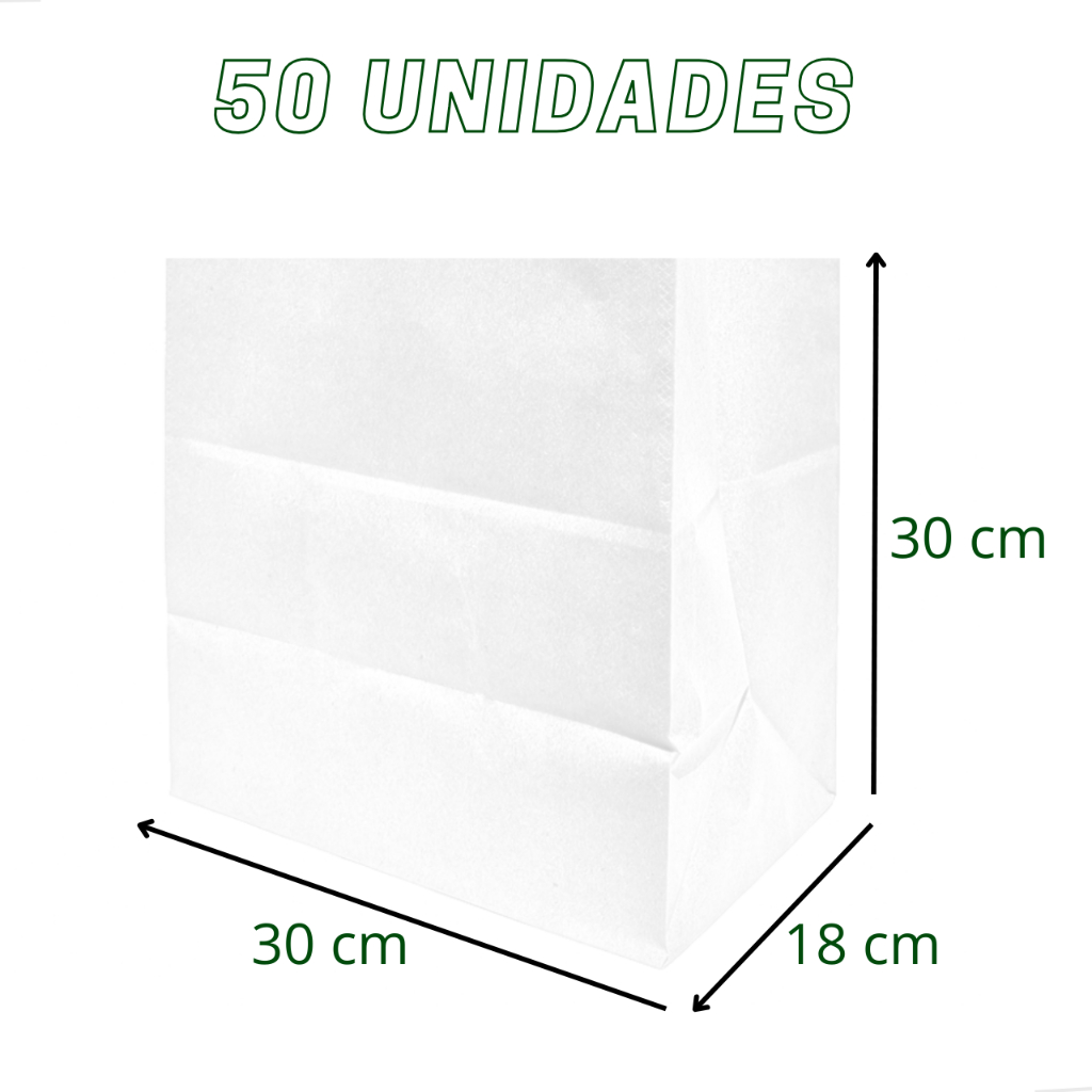 Saco Kraft Papel Delivery Branco G 30x30x18 cm (50 Unidades)