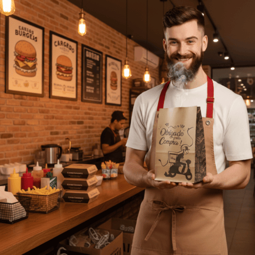 Saco Kraft Para Delivery (18x10x26) - Personalizado com 100 unidades