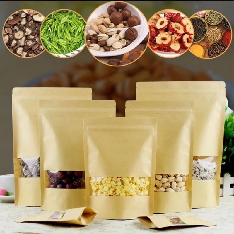 Saco Kraft Stand Up Pouch c/ Visor Zip 9x14x3 c/ 50 unidades