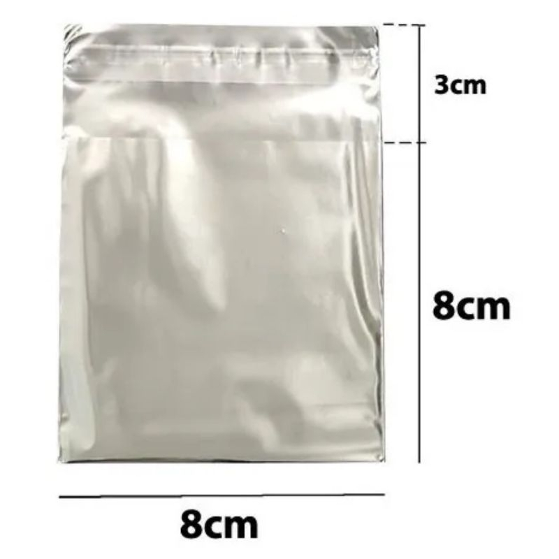 Sacos metalizados adesivados especial para bijuterias. Tamanho 8x8cm adesivo para fechar o saquinho. Cores metalizadas em material BOPP. Embalagem com 100 unidades.