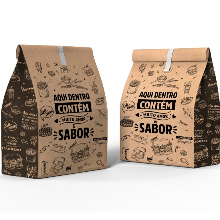 Saco Para Delivery Kraft SOS Grande 31x24x14 C/ 100 Unid Embalagem Hamburguer Restaurante Lanchonete